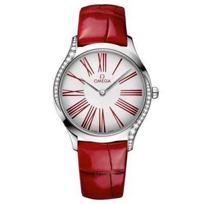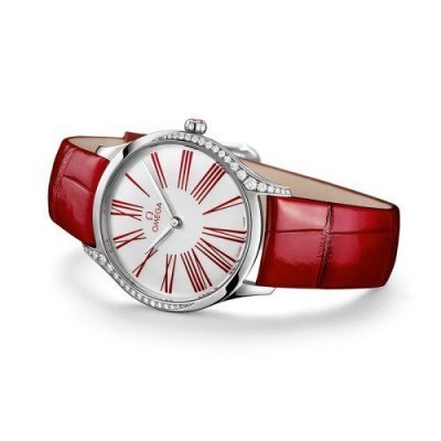 OMEGA/欧米茄瑞士手表 碟飞系列镶钻石英女士腕表 皮带白盘428.18.36.60.04.002